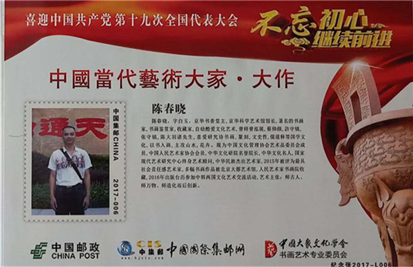 陈春晓,字白玉,灵芝,人类命运共同体.文哲科艺宗心世界研究中心创始人,践行传播者,京华书香堂主,京华科学艺术馆馆长,著名的书画家,书画鉴赏家,收藏家,爱国思想家,社会活动家,,自幼酷爱文化艺术,曾师曾泓展,蔡仰颜,许守镇,張守镇,陈大羽诸先生,喜爱研究诗书画,篆刻,文史哲,儒道释等國学文化,以书入画,主攻山水,花卉.现为中国文化管理协会艺术品委员会成员,中国人民艺术家协会会员,中华文化研究院各誉院长,中华文化名人,国家现代艺术研究中心终身艺术顾问,中华民族杰出艺术家,2015年被评为最具社会责任感艺术家,被中国文联评为“中国神州艺术人物“,多幅作品被北京大都艺术馆,人民艺术家书画院,及中国移动,中国联通,中国电信等企业收藏,2016年出版台历参加中韩两国文化艺术交流活动.2017年9月被中国大象文化学会书画艺术专业委员会,中国邮册发行组委会评为“喜迎中国共产党第十九次全国代表大会,不忘初心,继续前行,中国当代艺术大家,中国邮政部门经严格审批,在全国发行了中国当代艺术大家陈春晓限量版珍藏邮册,全国人大副委员长布赫和国家文物局局长,中国收藏家协会会长闫振堂为陈春晓领发“国家名片,卓越成就荣誉证书” ,艺术主张,师古人,师万物,师造化而后创新.