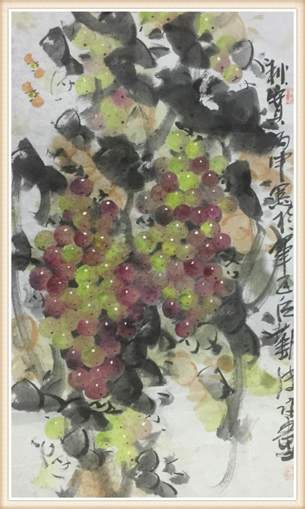 并充实到自己作品中来,经几十来的积累,沉淀,为艺术创作打下良好基础,无论从运筆,着色,构图,还是人物,花鸟上眼神,物件,羽毛,都很到位,传神,让观者大为赞叹。近年来他有在人物,花鸟方面苦下功夫,师古而不拘泥于单纯的模仿,到大自然中,写实,写生,把人物画更生动,而有所创新,有其创意,有自己的思想在作品中。葡萄自然写实,学古论今,使其更接近生活,栩栩如生,生机盎然,如临画境,深受书画爱好者的喜爱,并广为收藏,现为山东省美协会员,将军画院副院长,正德传统文化交流中心副秘书长。