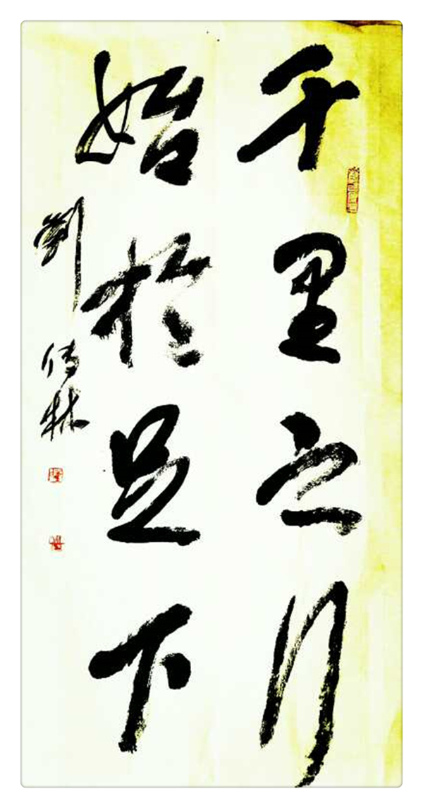 刘传林老师的作品以历代书法艺术为源头,形成了一种既具有坚实的功底又彰显了自家特点的书写风格,通过笔画、结构、章法的多变,强化书法的艺术之美,并且突出了传统与创新、贵乎浓纤互参、血脉相连、筋骨老健、风神洒脱、挥运自如有节律,可谓笔力雄健、华丽、腴润,刚与柔、虚与实、快与慢、浓与淡、粗与细、轻与重、大与小、正与斜、疏与密、连与断、拙与巧、霸气与秀气等多种韵律变化,使书法如诗如歌,进入更高的艺术境界。