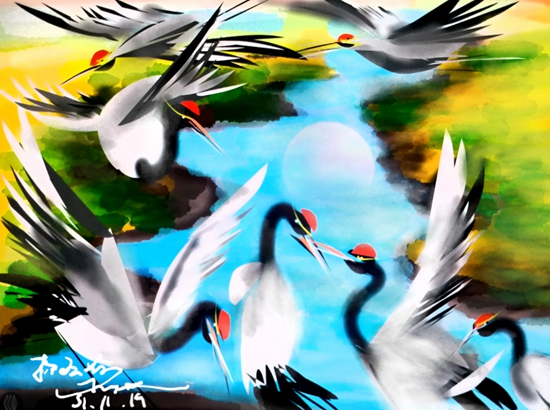杨羽莎女士,不固守于原地,不拘泥于传统,颠覆以往绘画艺术的作画方法,扔掉画纸和颜料,将创作从传统的绢、纸转移到了电子屏幕之上,这是一种大胆地开拓,亦是一种全新的尝试。但她从不怀疑自己的选择,坚定地以自己的方式,诠释着艺术的多元,在五维指画艺术的道路上洒下一路芬芳。